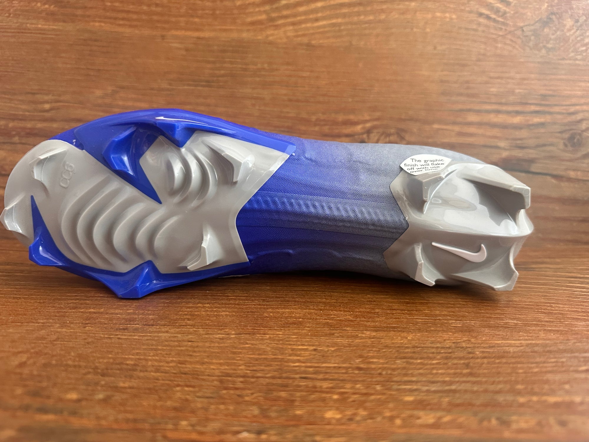 Experience unmatched agility with the Nike Vapor Edge 360 Untouchable in Silver and Blue. Designed for elite performance, it features a full-length Vapor Edge traction system for explosive speed and multidirectional grip. The lightweight Flyknit upper offers breathability and precise lockdown, while embedded cushioning ensures responsive comfort. This cleat combines cutting-edge technology with sleek aesthetics, making it a top choice for athletes who demand both style and superior on-field performance.